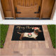 Adorable dog family name modern classic black lap doormat for Christmas celebration.