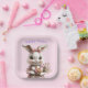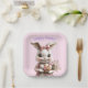 Adorable Easter Bunny Pink Bow Coloured Eggs Paper Plate
