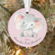 Adorable personalized & dated watercolor elephant set on a light pink background for baby's 1st Christmas.