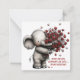 Make classroom Valentine’s Day extra special with this sweet kids card featuring a cartoon baby elephant holding a bouquet of red and pink roses. Surrounded by floating hearts, it’s perfect for celebrating friendship and kindness. The reverse side includes a cheerful heart pattern and space to write the sender’s name—adding a personal touch to every Valentine.