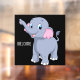 Adorable elephant welcoming board image, perfect for creating a warm and inviting atmosphere. Features a white under base that enhances the vibrancy of the colours, ensuring the design stands out on any surface. Front adhesive cling, Custom cut to match the shape of the elephant image, adding a unique touch to your decor.