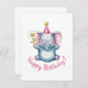 Adorable Elephant with Party Hat and Flowers Holiday Card