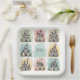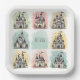 These personalised paper plates feature fairy tale-themed doodles of adorable sketched castles! Each design showcases a whimsical, playful style with soft and cheerful details. The drawings are set against pastel backgrounds like soft mint green, baby pink, powder blue, and pale yellow.