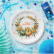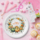 Adorable Floral Orange Green Pumpkins Baby Shower Paper Plate