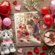 Celebrate love with this enchanting blank Valentine's Day greeting card featuring an adorable fluffy kitten surrounded by vibrant pink roses, floating hearts, and a sunlit window backdrop. The cute tabby cat, adorned with a pink bow, sits amidst a romantic scene of scattered red hearts and blooming flowers, evoking warmth and affection. This card is blank inside, allowing you to add your own heartfelt message for that special someone—perfect for partners, friends, or family.