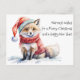 This delightful Christmas holiday postcard features an adorable illustration of a fluffy fox, seen from behind, wearing a cosy red sweater adorned with white snowflake patterns and a playful Santa hat. The snowy ground adds to the festive, wintry atmosphere. On the right side, a heartfelt greeting reads, “Warmest wishes for a Merry Christmas and a Happy New Year!” in an elegant script. The text is fully customisable, allowing you to add personal messages or names. This unique feature makes each card perfect for individualised season’s greetings, adding a personal touch to your holiday wishes.