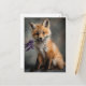 Adorable Fox Kit Holding Lavender Flowers Holiday Postcard