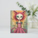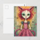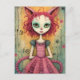 Adorable Furry Cat Lady Mixed Media Collage Postcard