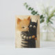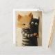 Adorable ginger cat and a black kitty ghost postcard