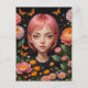 Adorable Girl With Pink Hair in the Flowers Postcard