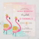 Adorable Glitter Pink Flamingo Birthday Invitation