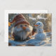 Adorable Gnome and Snowman in a Winter Wonderland Holiday Postcard