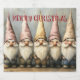 Beer lable with five cute Gnomes with long white beards and pointed hats. Fun lable for all the beer drinkers. Merry Christmas is written at the top in bold red letters.