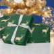 Adorable Gold Reindeers Green Merry Christmas Wrapping Paper