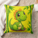 Adorable Green Cartoon Dinosaur Amid Bamboo Plants Cushion