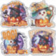 This sticker sheet features cute ghosts wearing witch’s hats, with a full moon and carved pumpkin. Perfect for adding an adorable yet spooky touch to your Halloween crafts and decorations!