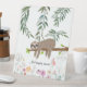 Adorable hand drawn sloth hanging around sign