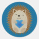 Adorable Hedgehog hugging a Blue Heart Classic Round Sticker
