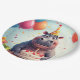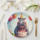 Adorable Hippo Celebrating Birthday with Cake Paper Plate
