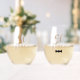 Glass 1: Front design features gold-coloured lettering reading, "50 years" in an elegant script. The number of years is customisable to suit your needs. Image of a dainty heart necklace is pictured below wording. Reverse displays the customisable text, "and so much more to come!" in same elegant font.