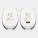 Glass 2: Front design is the same as glass 1 except the image below wording is of a black bowtie. Reverse features the customisable text which reads, "and still going strong!"