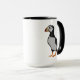Horned Puffin Puffin standing illustrated from the side view. The head of this pretty bird is turn to show off its beak marking.