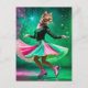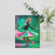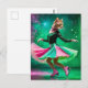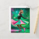 Adorable Ice Skating Cat in Pink and Green Postcard