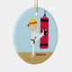 This is an adorable Christmas ornament for that boy who loves karate in your life! It's an adorable boy in his gee with his leg up hitting a bag. Next to him is a large red bag hanging with a black star in the middle of it. You can personalise with name. Check out the many other designs and colours in this line.Cherish this keepsake for many ,many years! ©JW Illustrations