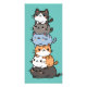 Adorable pile of cute kawaii cartoon cats, each stacked one on top of the other, each a different look and colour. Background colour is the perfect shade of teal.