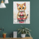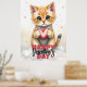Adorable Kitten Holding Pink Heart Valentine's Day Poster