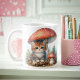 Adorable Kitten Under Mushroom Umbrella Coffee Mug