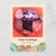 This Easter greetings postcard features a photo of 4 beautiful kittens huddled together inside an orange basket looking up with their pretty blue eyes. This photo may be personalised and replaced with your own family photo. Below is the text "Easter Greetings! From All Of Us". This greeting may also be modified and personalised. Below the greetings are 5 very colourful and decorative Easter eggs which may be repositioned or replaced with your own graphics through the customise it button.
