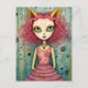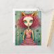 Adorable Lady With Cat Ears Mixed Media Collage Postcard