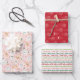 Set of 3 adorable Christmas mail themed patterns: Letters to Santa with mail, envelopes and accessories in pastel pink, red, green, gold and tan; Christmas Lettering (North Pole and Santa Claus) in pastel pink, red and green; as well as Christmas Stamps in red.