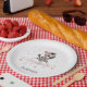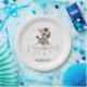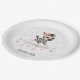 Cute baby shower or birthday paper plate featuring adorable little female zebra wearing a cute pink bow with some love hearts