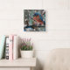 Adorable little blue bird Wall Clock. The design on this tile is of an adorable winter blue bird is a mixed media piece created using acrylics, paper and more. Perfect for the nature and bird lover! This artwork is also available on other products for mixing and matching! Design from jennsemporium.