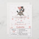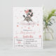 Cute girl baby shower invitation featuring adorable little female zebra wearing a cute pink bow with some love hearts