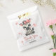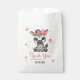 Cute girl baby shower favor bag featuring adorable little female zebra wearing a cute pink bow with some love hearts