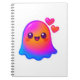 Adorable Neon Kawaii Ghost with Gradient Glow and Notebook