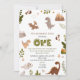 Adorable Neutral Jungle Dinosaur 1st Birthday Invitation