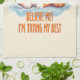 Bring a smile to your day with our 'Believe Me! I’m Trying My Best' kitchen towel featuring an irresistibly cute orange tabby cat. This heartwarming and relatable artwork is perfect for cat lovers who know the struggle of doing their best. A charming gift for any occasion or a fun treat for yourself!