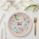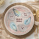 This round wedding paper plate features a background of watercolor oysters arranged on a "china" plate, creating a coastal-inspired and artistic design. Customize the text for your event. It works for weddings, engagement parties, and showers.