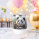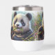 Painting of cute young panda eating sprigs of green bamboo