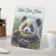 Adorable Panda Bear Eating Bamboo Add Script Pedestal Sign