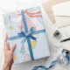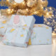 Add a touch of whimsy this holiday by wrapping your baby's first Christmas presents with this adorable kids Christmas wrapping paper. This design features a soft blue background with polar bears with ice skates and reindeer horns. Cute bunnies with yellow coats carry Christmas trees. Stars and bits of botanical accents complete this sweet holiday pattern. Perfect for a kid's xmas present.