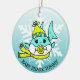 Adorable Personalised Baby Shark and Snowflake teal Christmas ornament.