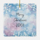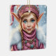 Cute personalised Christmas ornament with a cute illustration of a girl elf in pink with snow falling in the background. YOu can add your own message to the pretty back side of the ornament that is filled with pink and blue snowflakes.