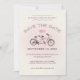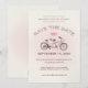 An adorable Save The Date announcement featuring a tandem bicycle with two little hearts. So cute!
