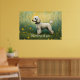 A cute white baby poodle in the flower meadow. Easily customise the text or just delete it.