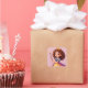 A cute young princess character with luxurious curly hair, attired in a pink gown, and holding a magic wand, set against an inviting and warm background, radiating charm and elegance.